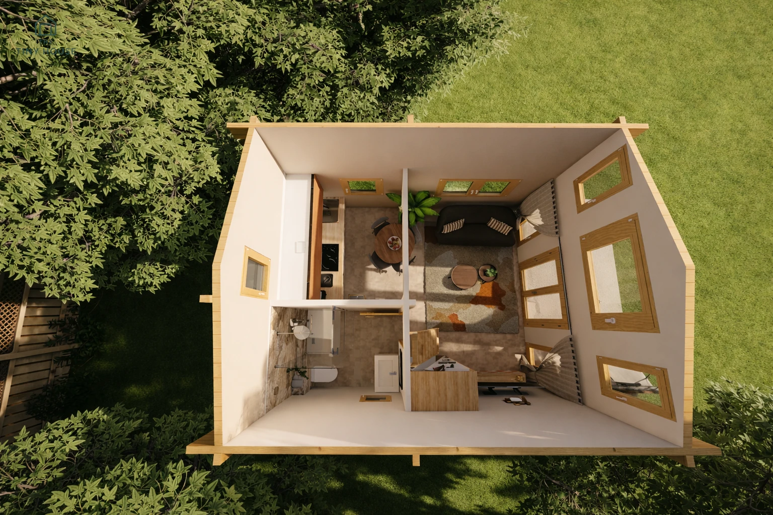 ✅Matériaux haut de gamme : une tiny house qui se loue facilement.